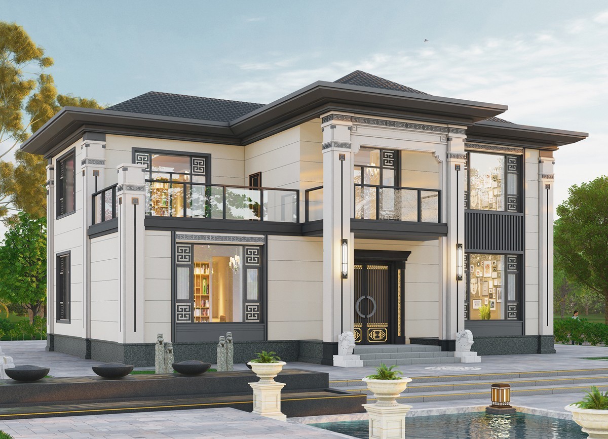 荆州005 两层新中式(11.36x11.76米)-【易设计】